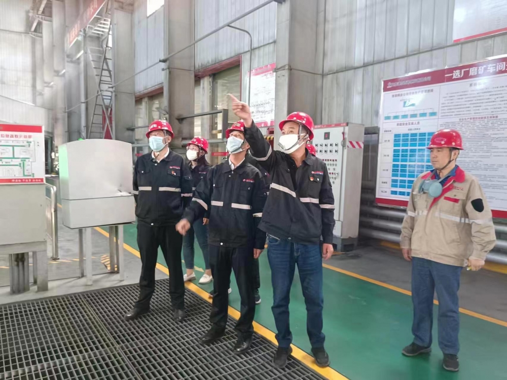 張文全一行深入選礦車間、總控室、尾礦庫等地對生產(chǎn)情況進行實地查看,詳細了解現(xiàn)場生產(chǎn)、設備運轉(zhuǎn)、安全管理等情況,與現(xiàn)場干部職工進行交流。